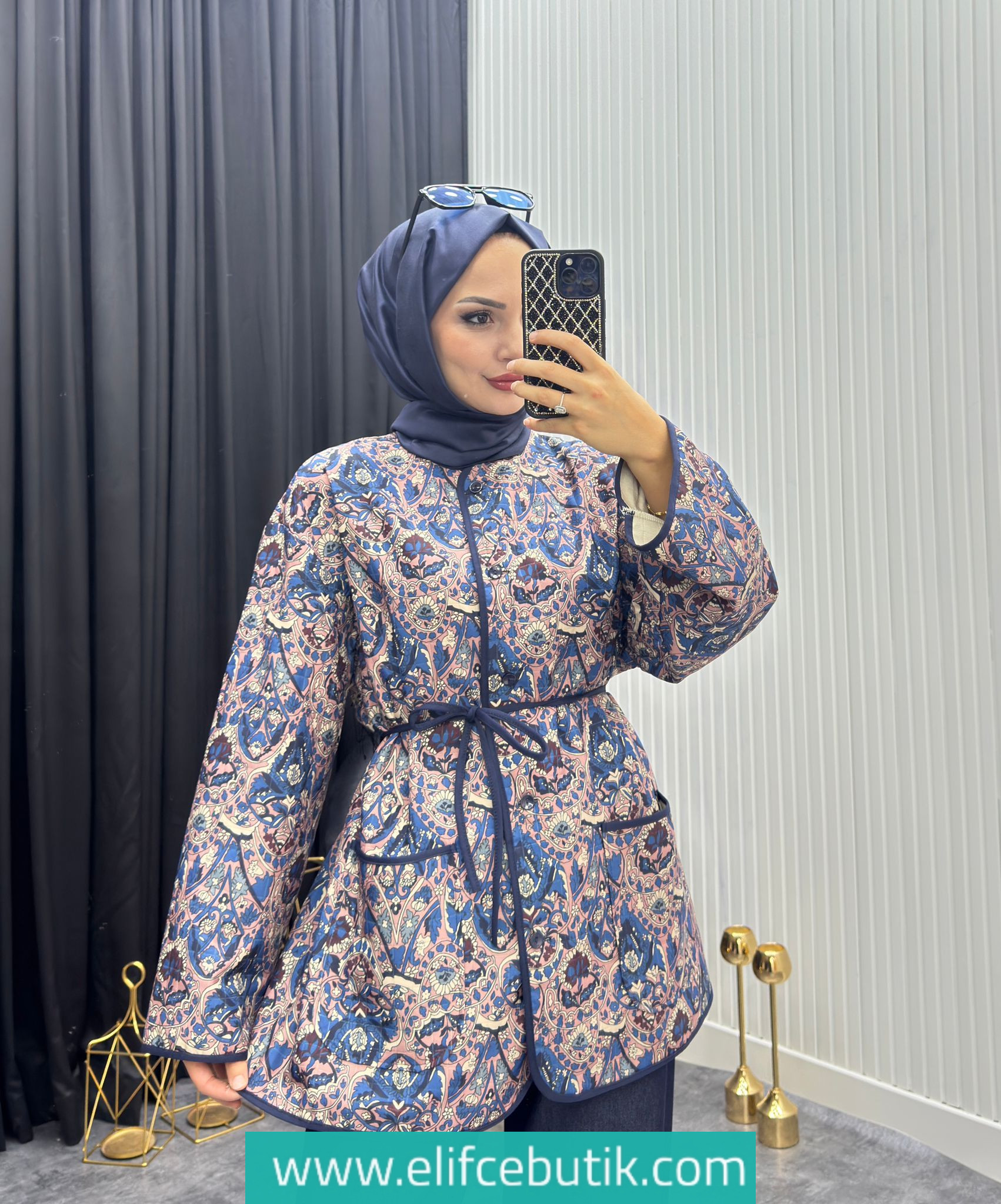 ☔️70/75 cm Seyyar kemerli çift cep detaylı boydan düğmeli bohem kapitone ceket