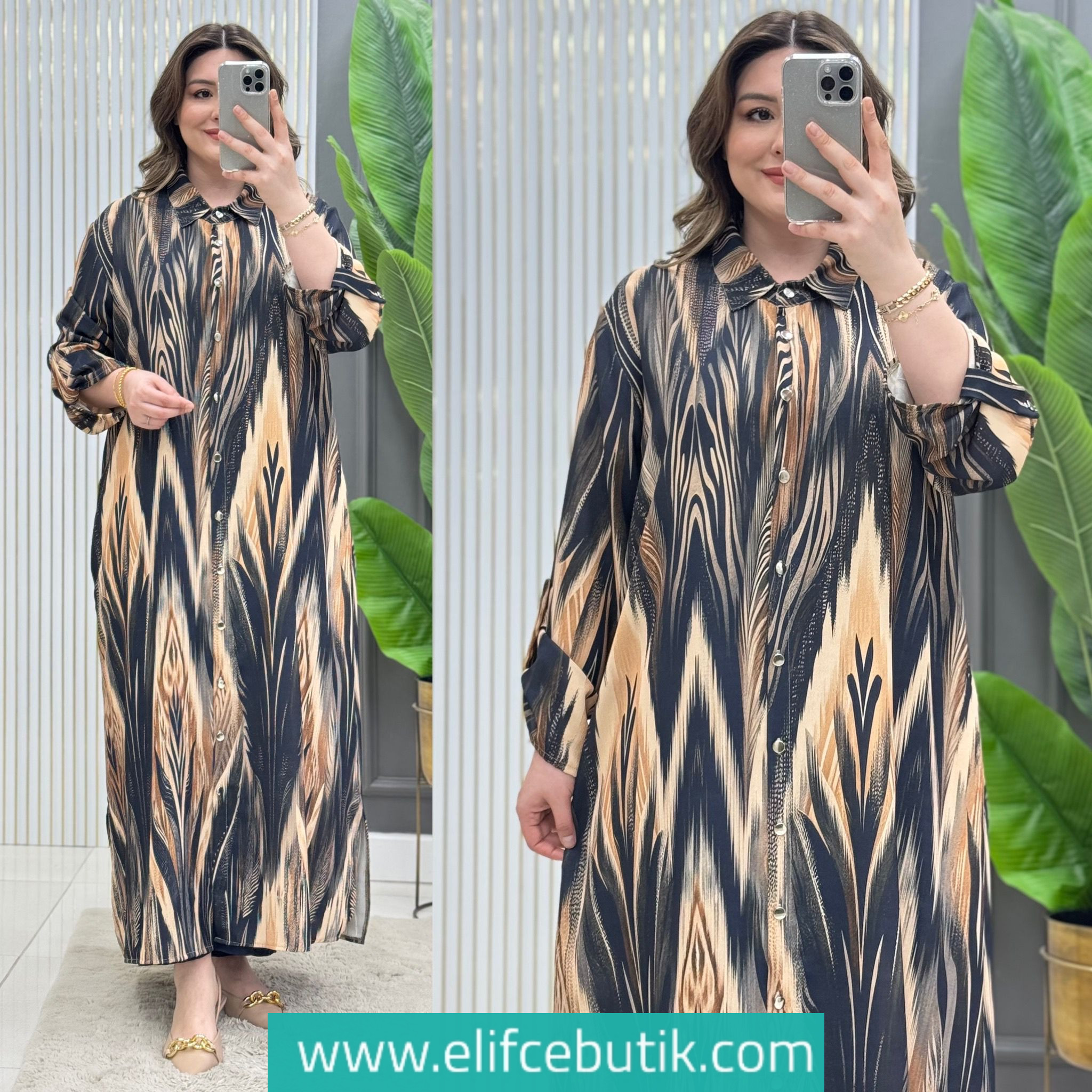 Tunik boydan düğmelidir, kolları lastiklidir.