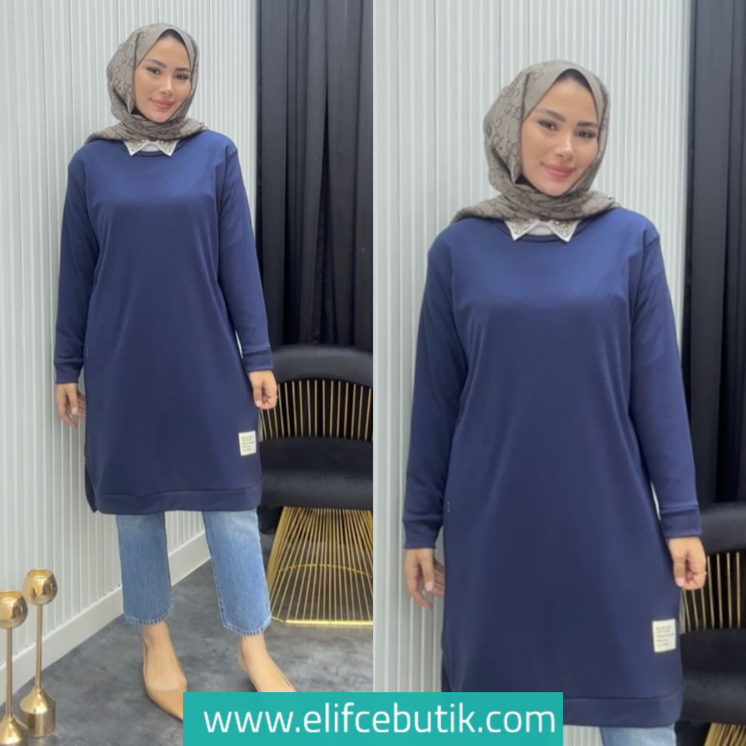 Ürün mevsimliktir. Önden arma detaylı yandan mini yırtmaç detaylı bisiklet yaka sweat