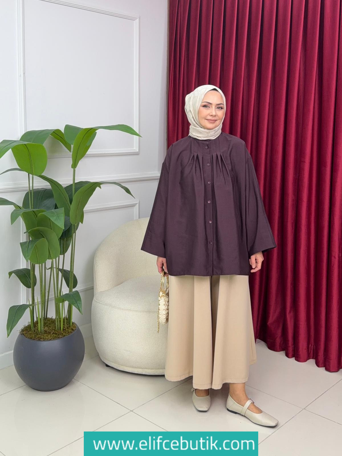 Muhafazakar modanın en sevilen parçalarından olan bol kesim gömlekler, Hola serisi ile yeni bir boyut kazanıyor. Göğüs kısmındaki pile detayları hareket halindeyken zarif bir döküm sağlarken, 75 cm uzunluğu tunik rahatlığı sunuyor.